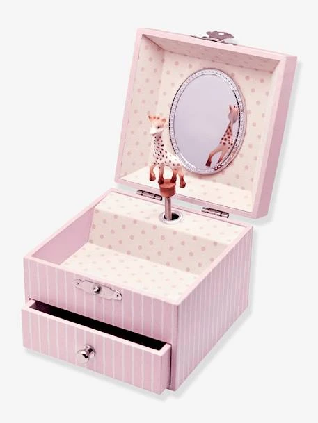 Cette jolie boîte à musique en forme de cube et disposant d’un tiroir émerveillera votre enfant qui y rangera ses trésors ! Actionnez la manivelle et la figurine Sophie la Girafe s’anime comme par magie au son de la musique ! Le petit plus ? Elle brille dans la nuit pour amuser et rassurer votre enfant.