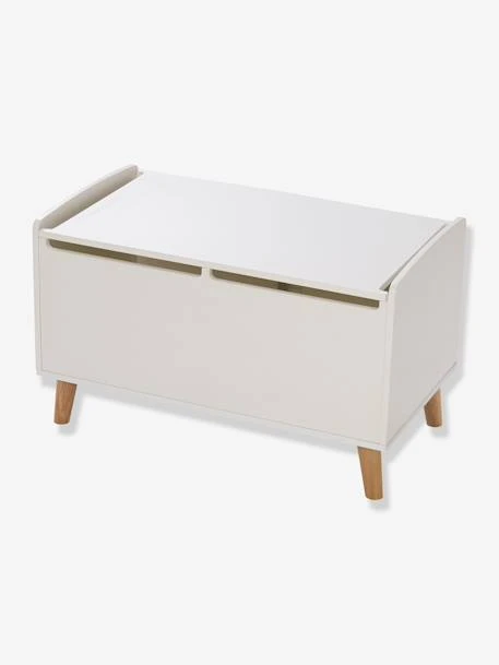 Coffre à jouets en panneaux de fibres de bois, pieds en pin.