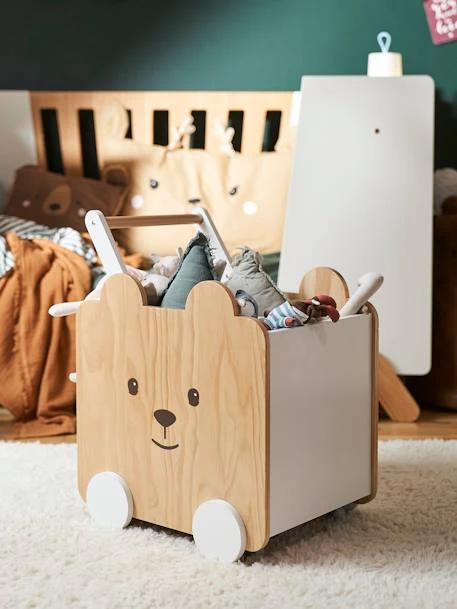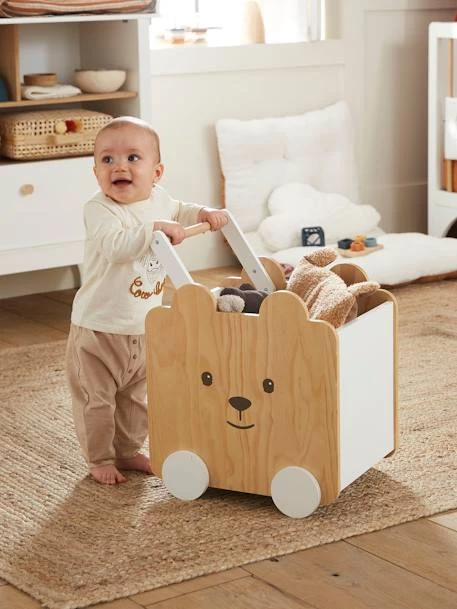 Coffre à Roulettes Ourson Blanc – Bois – Vertbaudet