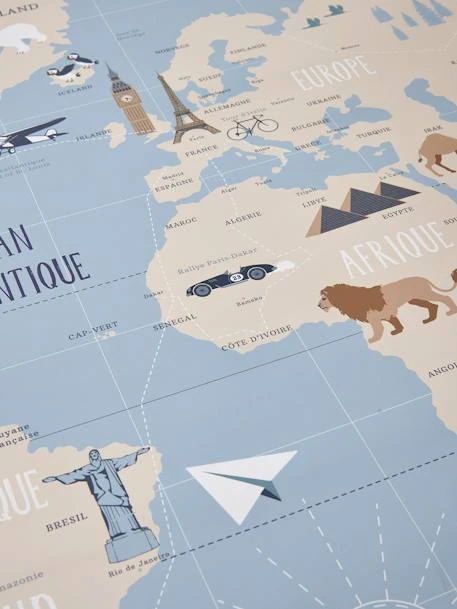 Une mappemonde qui décore joliment le mur de la chambre tout en permettant à votre enfant de se familiariser avec la Terre, ses océans et ses 5 continents. Cette Carte du monde est une façon ludique et originale pour les enfants de découvrir le monde !