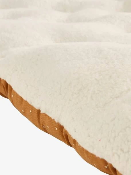 Matelas de sol en coton sergé et sherpa polyester, garnissage et doublure polyester.