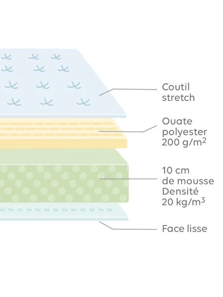 Un matelas disponible en 2 tailles et à l’épaisseur plus fine qu’un matelas standard, adapté à nos tiroirs de lits enfants et lits gigognes vendus séparément sur notre site.