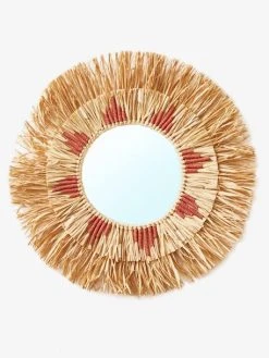 - Miroir rond en raphia et coton