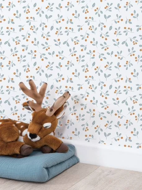 Un vent de douceur automnale avec ce papier peint et ses petites baies accompagnées de leur feuillage pour recréer un décor magique et enchanté à vos petits lutins des bois.
